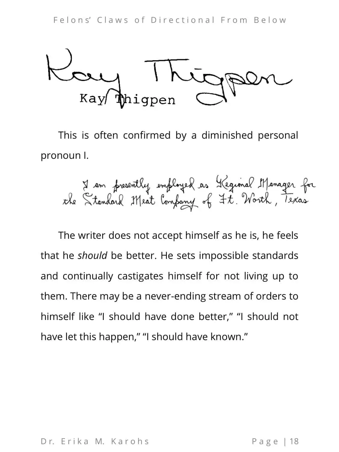 Felons’ Claws of Directional Pressure from Below is an Inner Circle series e-book written by Dr. Erika M. Karohs, Ph. D., Ed. D. Describing directional pressure from below, directional pressure in the lower zone has the effect of turning the lower zone loop into a curved formation.