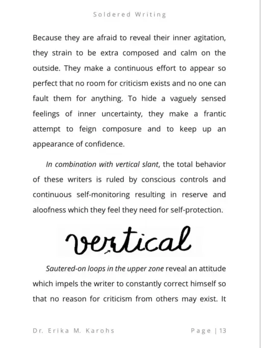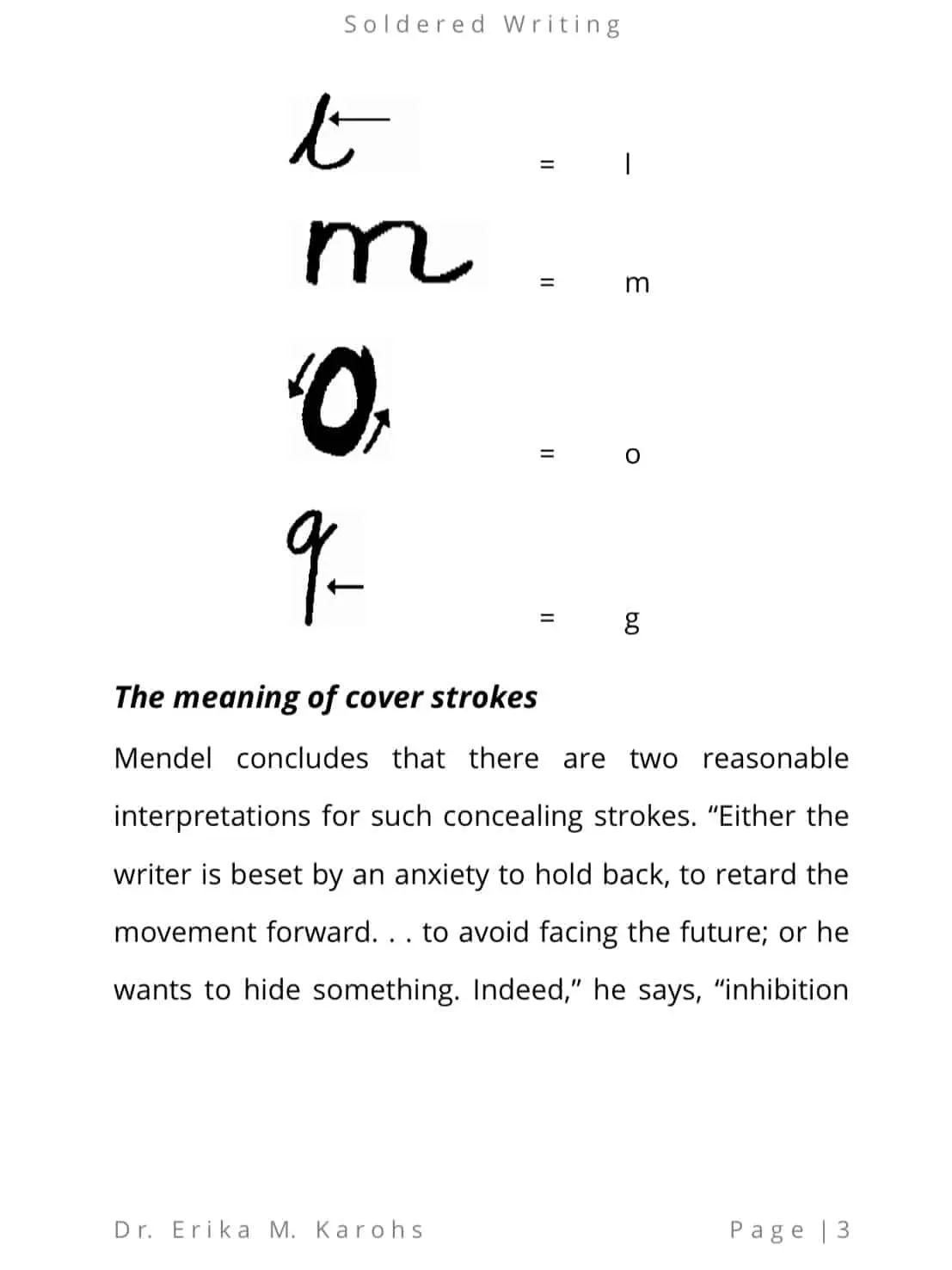 Hidden Meaning of Soldered Writing is an inner circle e-book series written by Dr. Erika M. Karohs, Ph. D., Ed. D. This e-book tries to explain the importance of Soldered Writing in the graphological phenomenon by looking at various graphic indicators and characteristics so that the meaning behind a writing can be known.