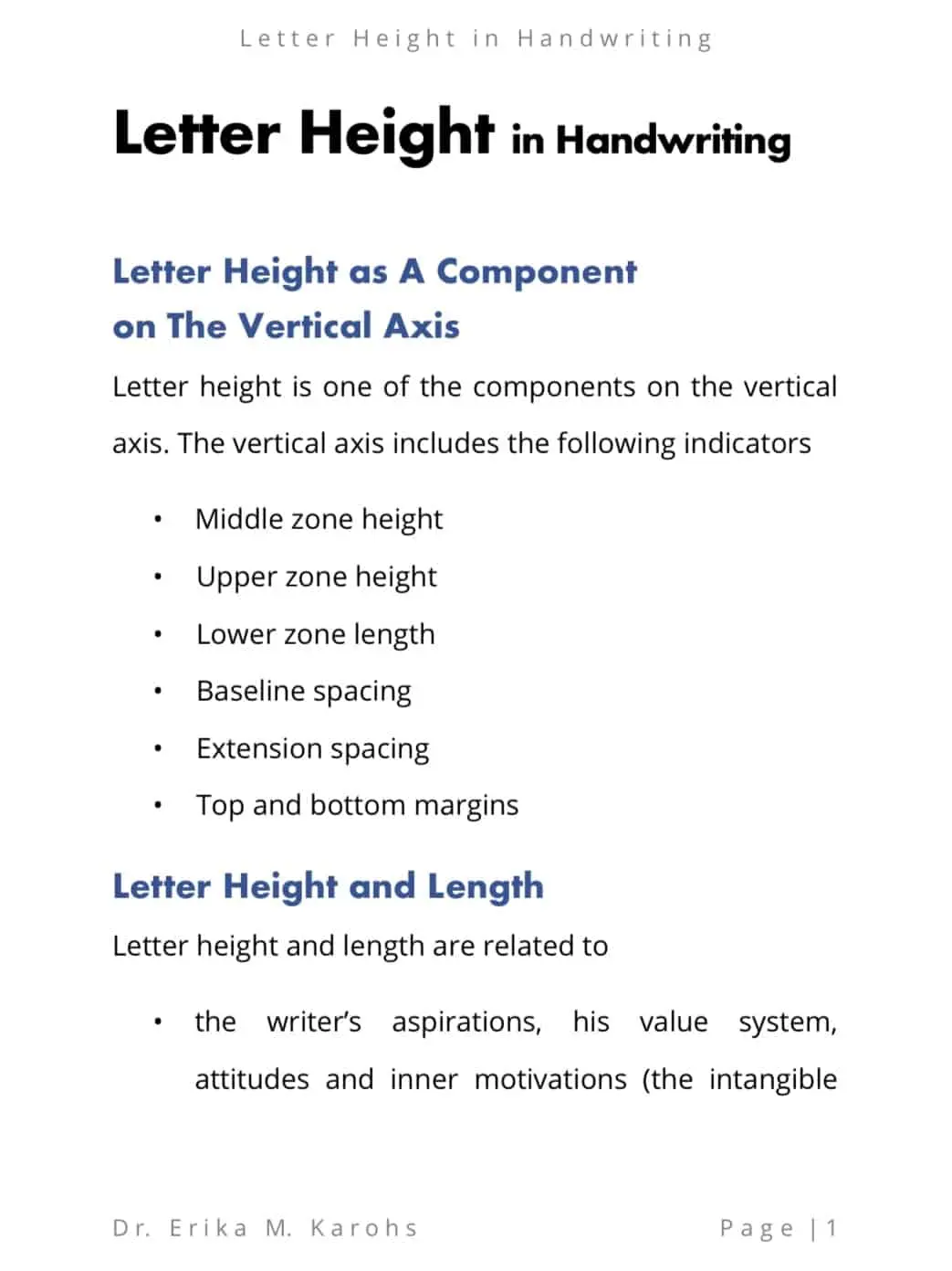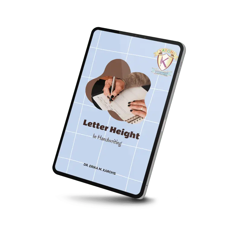 Letter Height in Handwriting is an inner circle e-book series written by Dr. Erika M. Karohs, Ph. D., Ed. D. Explains the height of a letter and handwriting which includes height, length, distance / space in a writing.
