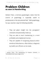 Problem Children as Seen in Handwriting is an e-book written by Dr. Erika M. Karohs. It describes some significant differences between the handwriting of “normal” children and so-called problem children. Dr. Herbert Peter compared the handwriting of over 6000 so-called problem children with the normal handwriting of young people.