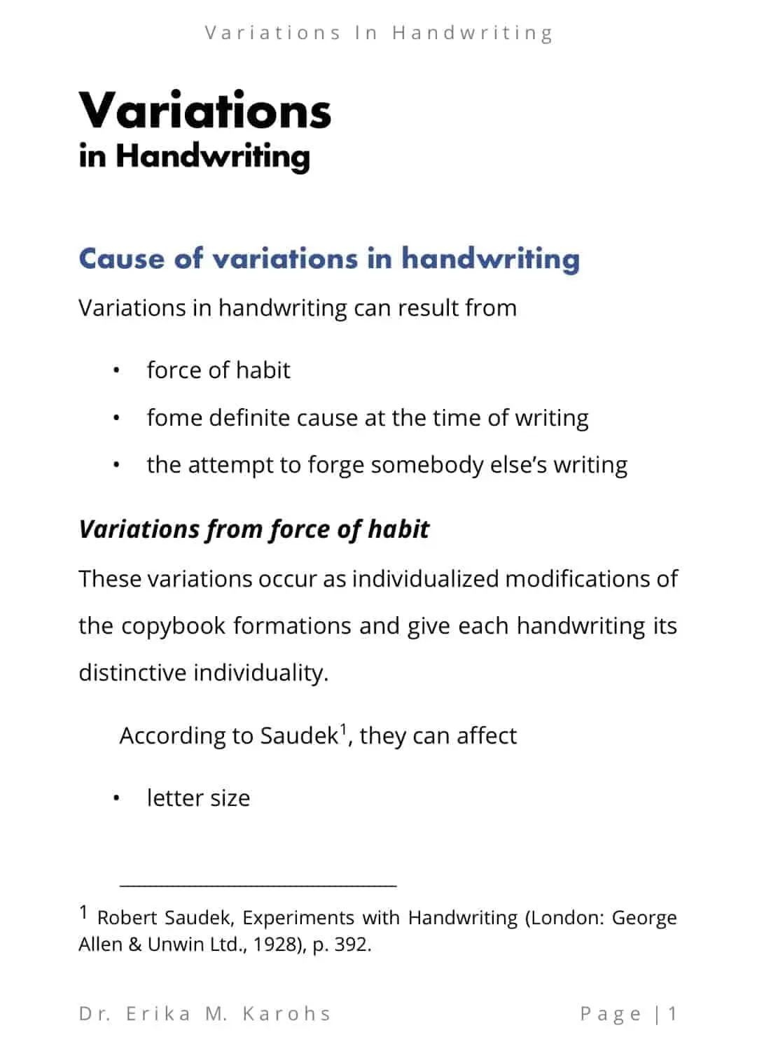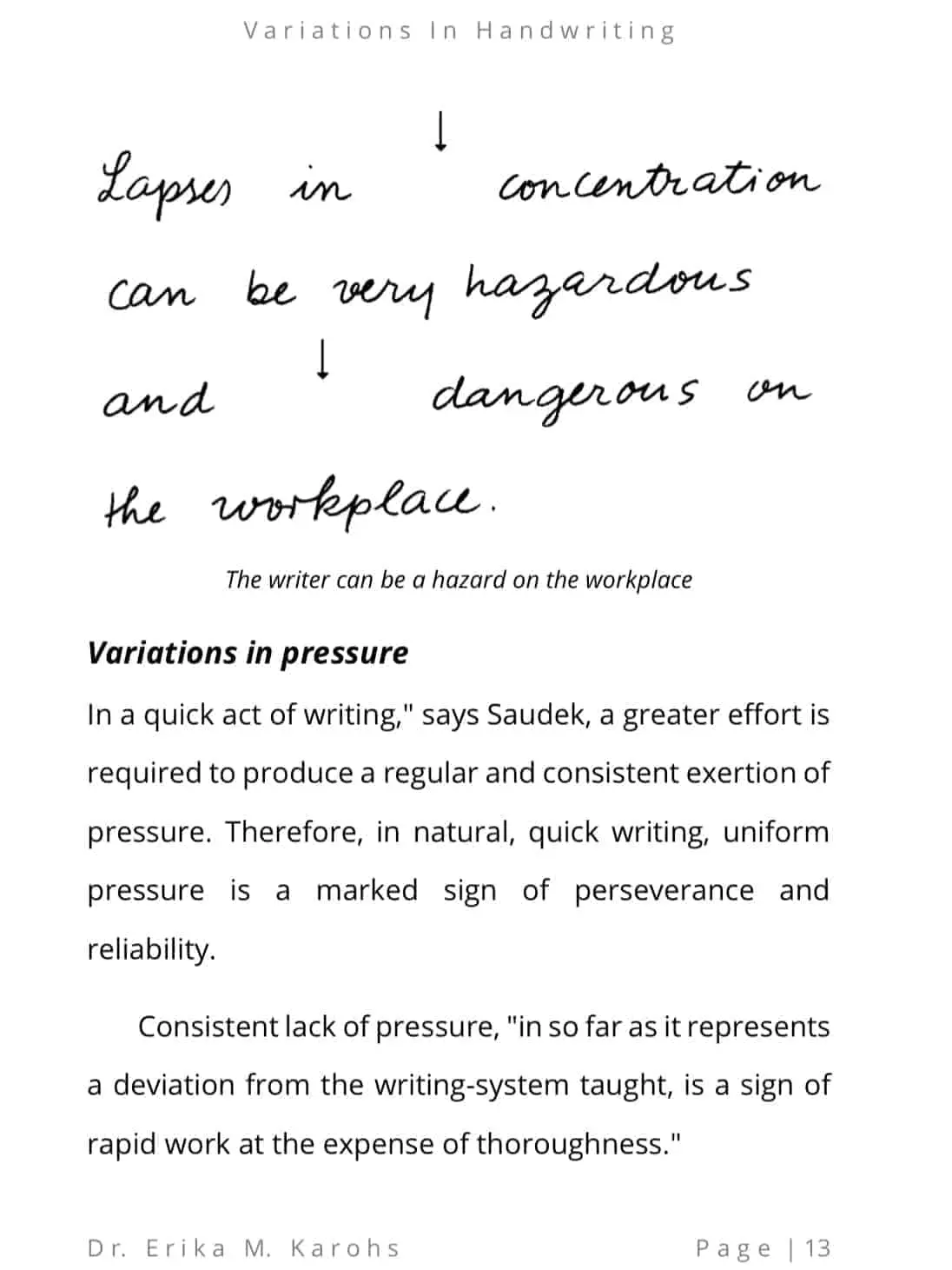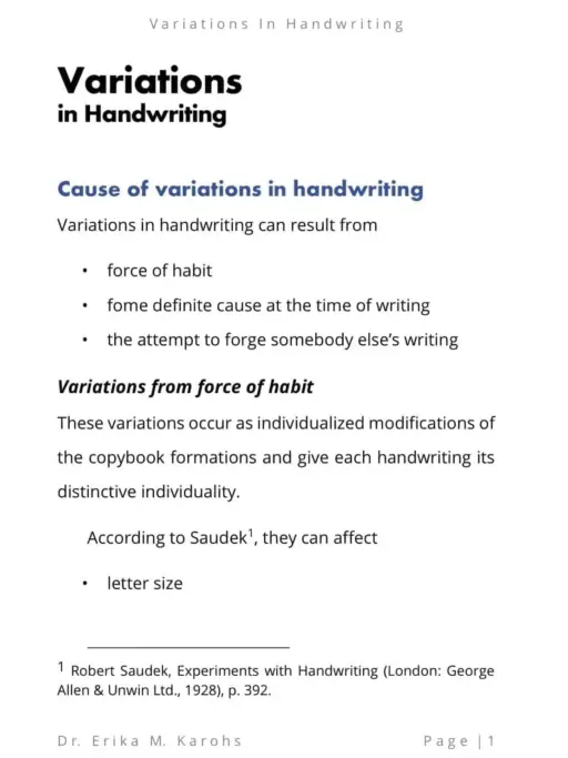 Variations In Handwriting is an e-book written by Dr. Erika M. Karohs. This e-book contains variations in handwriting, complete with examples and explanations.