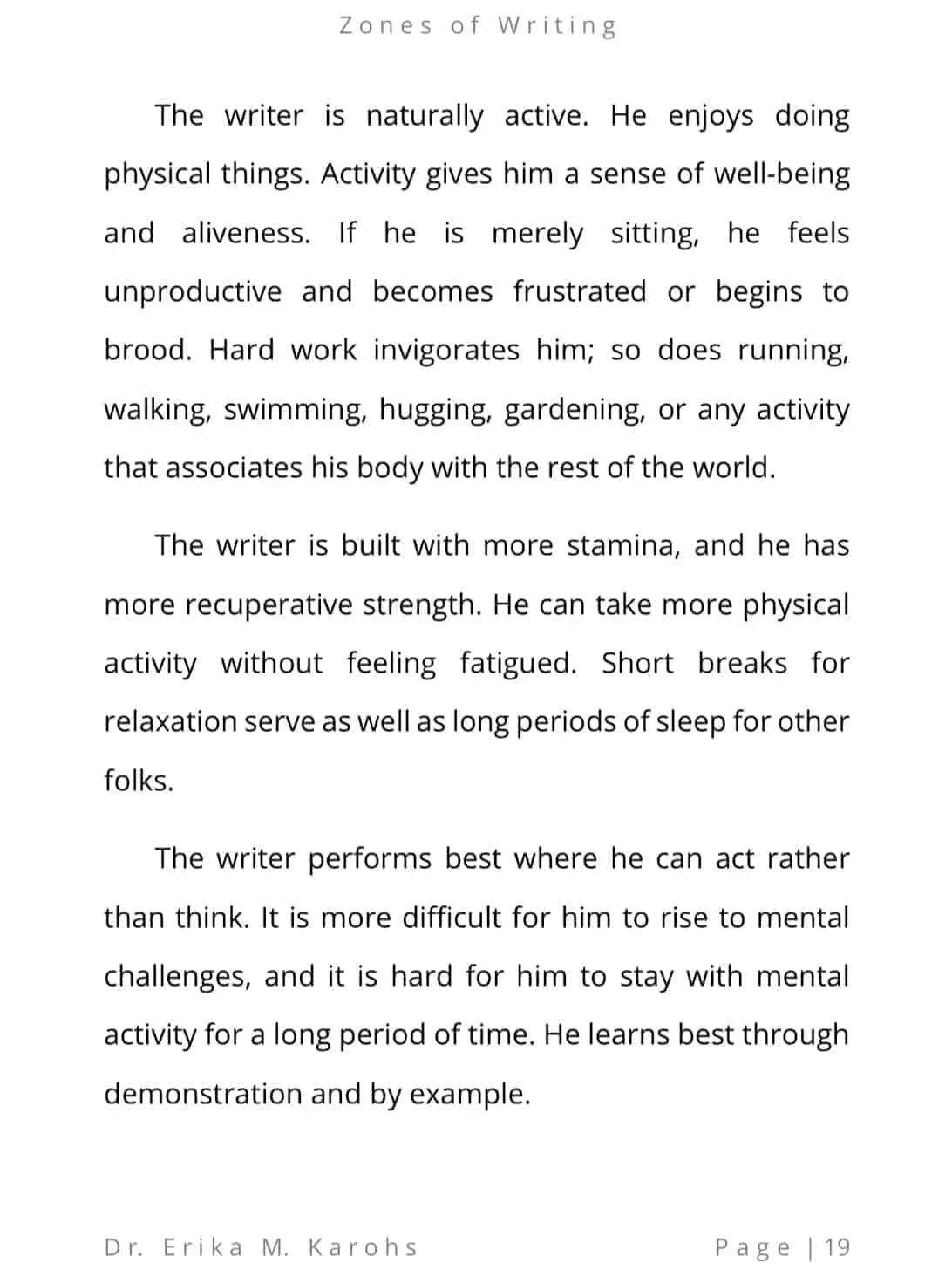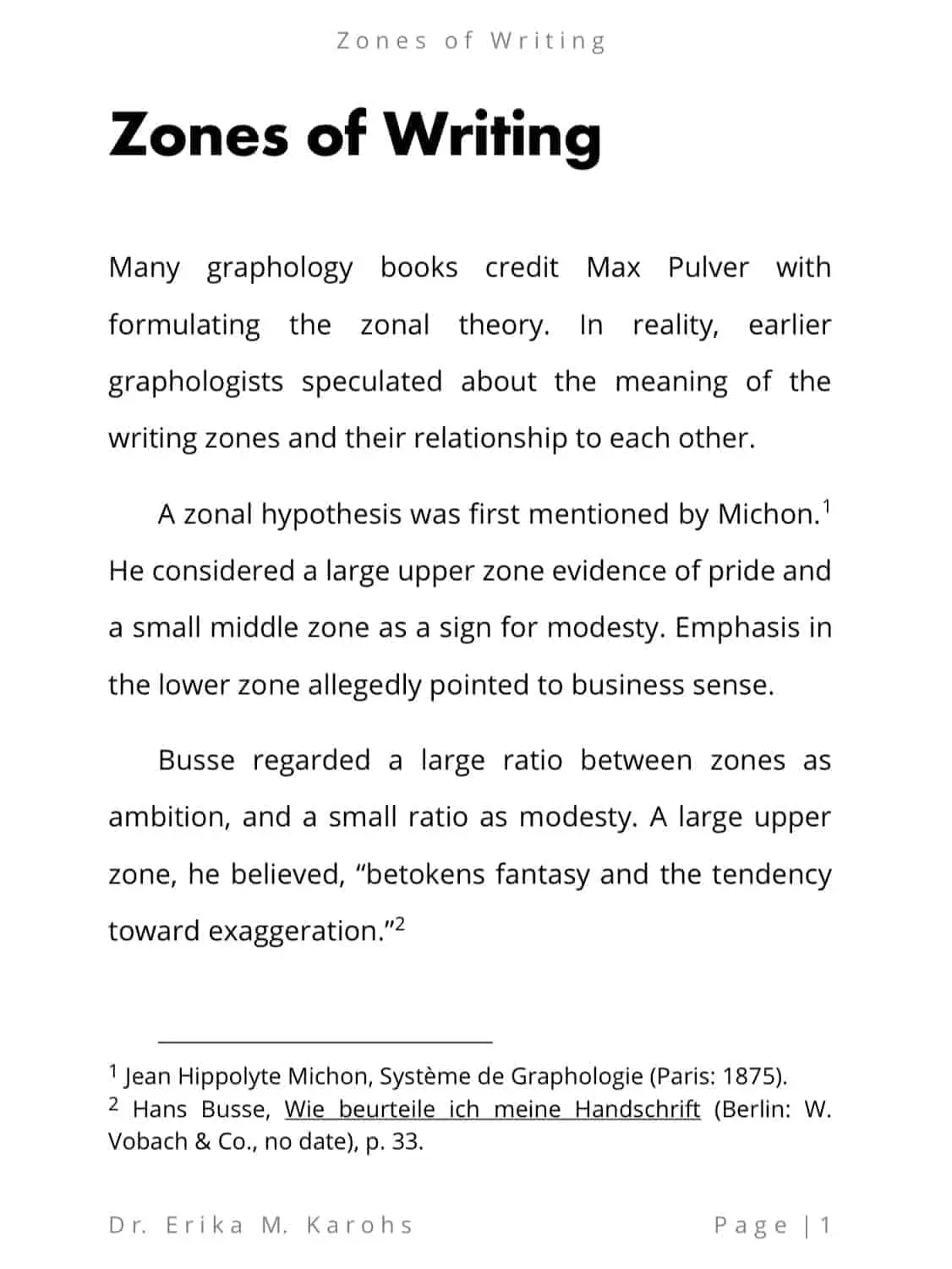 Zones of Writing is an e-book written by Dr. Erika M. Karohs. This e-book contains the meaning of writing zones and the purpose of the types of writing zones in order to see other people’s traits and personalities.
